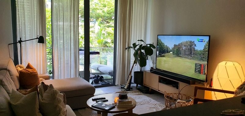 Step into a world of elegance as you enter this beautifully designed unit at The Seawind. Abundant natural light floods through the floor-to-ceiling windows, creating a bright and airy ambiance that invites relaxation. Enjoy serene views of the pool and lush greenery from your private balcony, where privacy louvers enhance your outdoor experience.