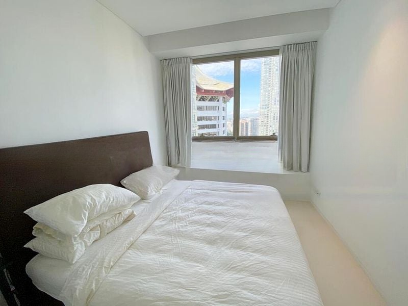 Step into a realm of modern elegance as you enter this designer unit at Scotts Square. Bathed in abundant natural light, the open-concept living room features floor-to-ceiling windows that frame stunning views of the city skyline and lush greenery. The neutral colour palette, complemented by designer pendant lighting, creates a serene ambiance that invites relaxation.