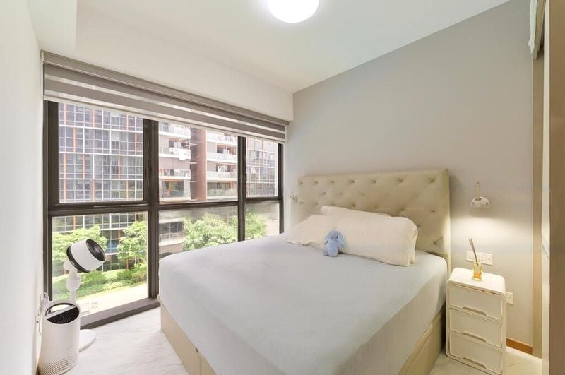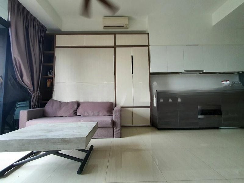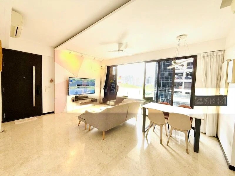 Step into a world of modern elegance at SIMS URBAN OASIS, where abundant natural light floods the open-concept living space, accentuating the polished stone-look floor tiles and the sleek breakfast bar. The floor-to-ceiling windows offer breathtaking urban high-rise views, creating an inviting ambiance that feels both spacious and intimate.