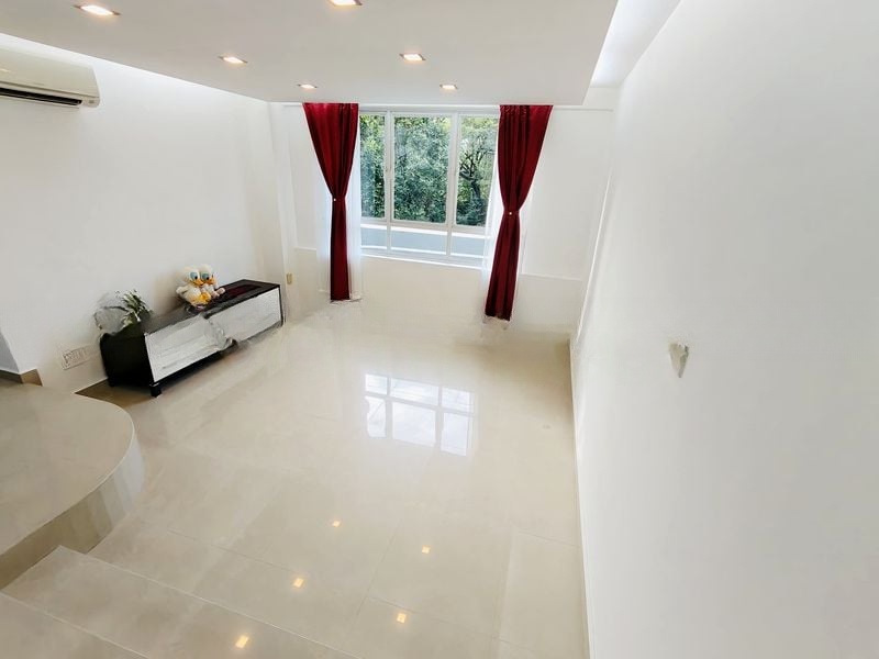 Step into a world of modern elegance as you enter this beautifully renovated unit at Escada View. The polished beige floor tiles and high-gloss white kitchen cabinetry create a striking first impression, while the ambient lighting from the false ceiling enhances the spaciousness of the split-level living area. Large windows invite natural light, making the space feel warm and inviting.