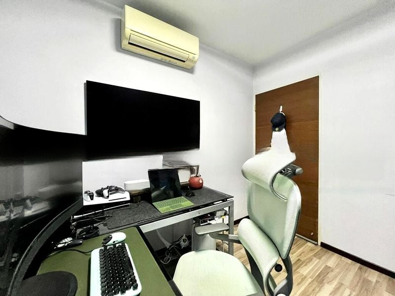 Step into a bright and airy sanctuary at 117 Yishun Ring Rd, where polished granite flooring and a modern galley kitchen greet you with an inviting ambiance. The open-concept living and dining area, enhanced by recessed lighting and a glass partition, creates a seamless flow that is both functional and stylish, perfect for relaxation and entertaining.