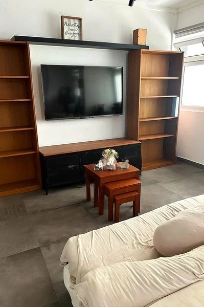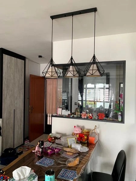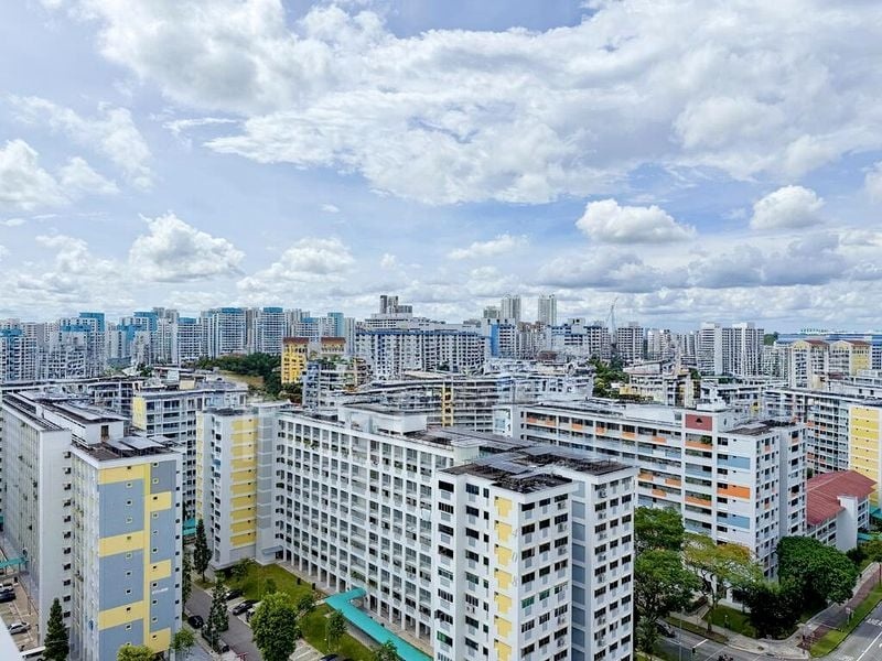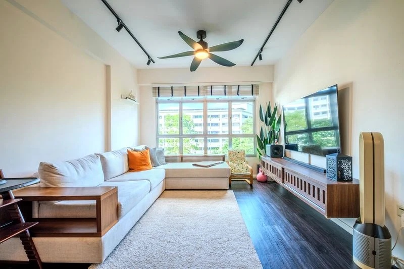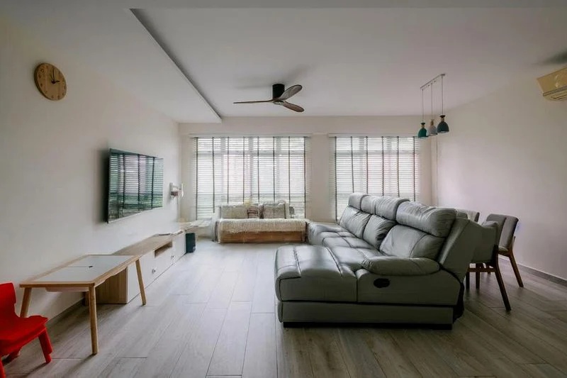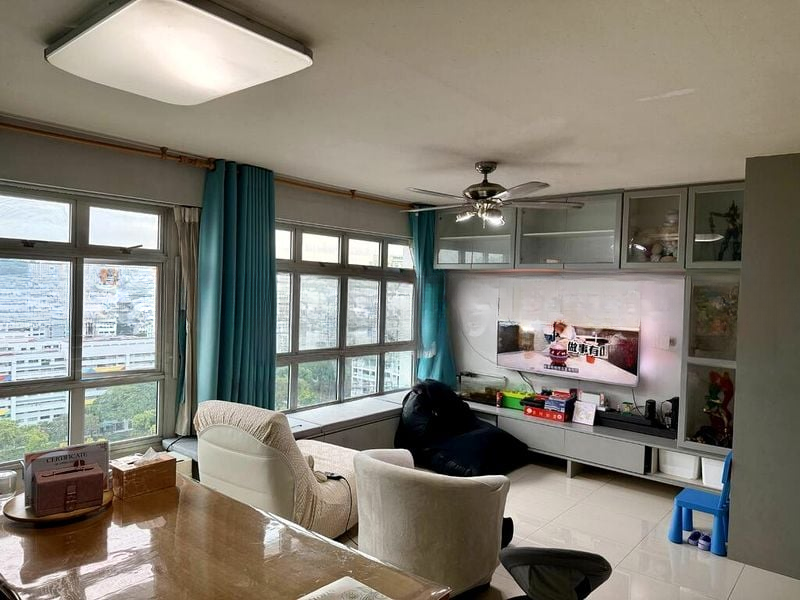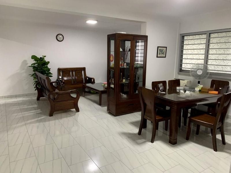 Step into this beautifully renovated HDB flat and feel the warmth of its cozy ambiance. The open-concept living and dining area, adorned with large format marble-look floor tiles, invites natural light to dance across the space. Enjoy urban views framed by large windows, while traditional dark wood furniture adds a touch of elegance to the modern setting.
