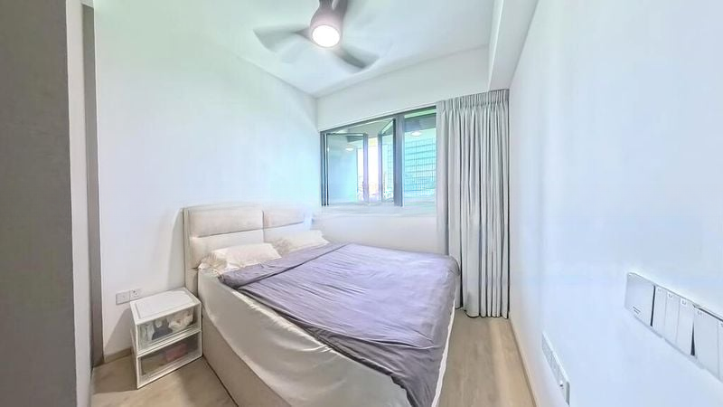 Step into a sanctuary of modern elegance, where abundant natural light floods the space, highlighting the sleek finishes and minimalist design. The open layout seamlessly connects the living area to a balcony that offers unblocked views of lush greenery and the city skyline, creating a serene yet vibrant atmosphere.