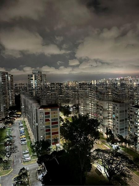 Step into this stunning 3-bedroom HDB flat and be captivated by the abundant natural light that floods the open-concept living and dining area, accentuated by modern industrial finishes. The striking blue corrugated metal feature wall and industrial track lighting create a unique ambiance, while large louvered windows offer views of the vibrant urban landscape.