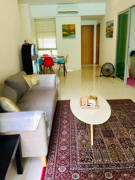Step into this beautifully maintained unit at The Stellar, where abundant natural light floods the open-plan living and dining areas, creating a bright and airy ambiance. The large format floor tiles and stylish patterned rug in the living room invite you to relax, while the spacious balcony with wood decking offers a serene view of the pool and vertical greenery, perfect for unwinding after a long day.