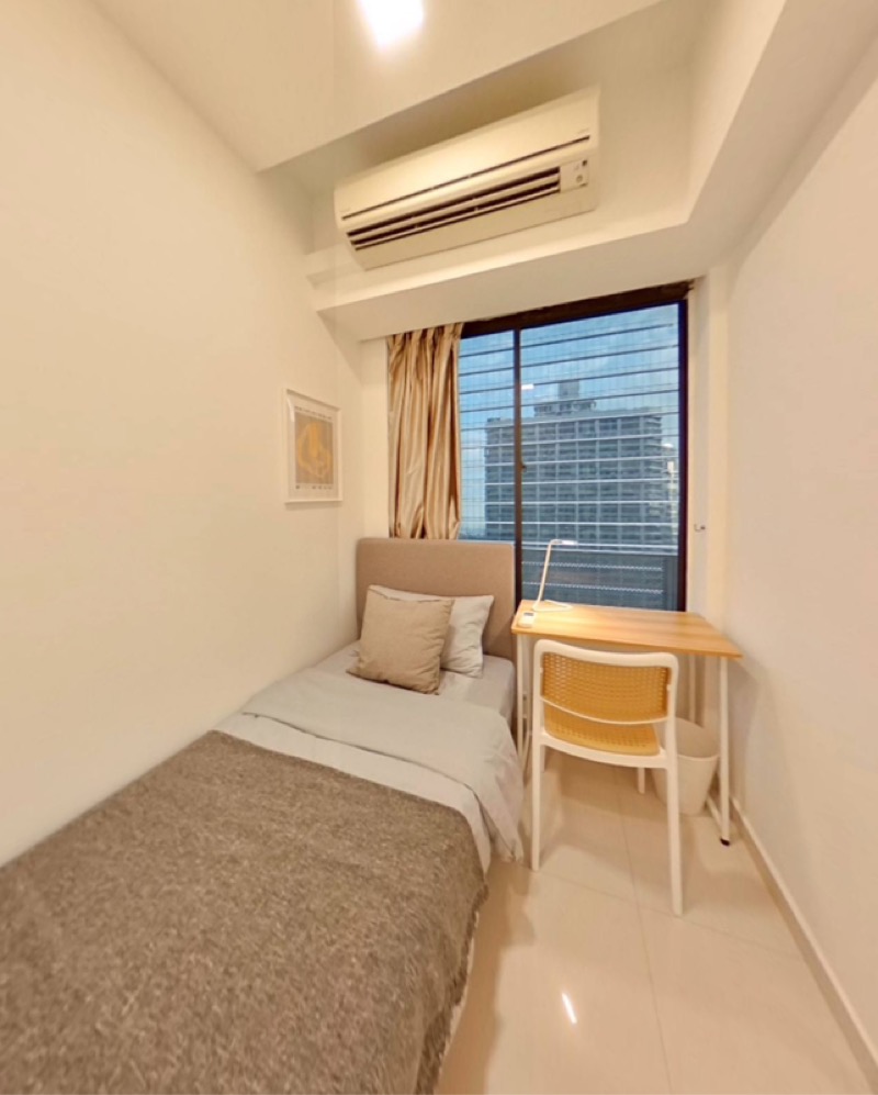 This well-maintained 1-bedroom unit boasts a fully equipped kitchen with stainless steel finishes, including a gas cooktop and built-in oven, perfect for culinary enthusiasts. The cozy bedroom is thoughtfully designed with a single bed and a dedicated study desk, making it ideal for both relaxation and productivity. Enjoy meals in the dining area under stylish pendant lighting, or unwind on the balcony while taking in the breathtaking views of the city.