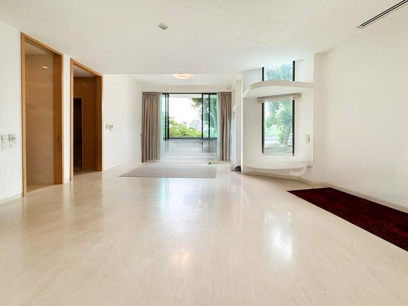 Step into a sanctuary of light and space, where abundant natural light floods through floor-to-ceiling windows, illuminating the elegant finishes throughout. The airy ambiance is complemented by views of the lush greenery and the shimmering city skyline, creating a perfect backdrop for relaxation and entertainment.