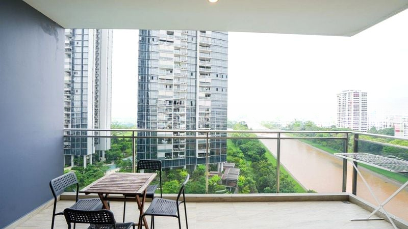 Step into a bright and airy sanctuary at PARC RIVIERA, where abundant natural light floods the space, accentuating the polished floor tiles and modern finishes. The unblocked panoramic views of the city skyline and lush greenery create an inviting ambiance that instantly makes you feel at home.