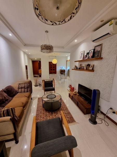 Step into a world of elegance and light in this beautifully renovated unit at Seletar Springs Condominium. The bright and airy ambiance is complemented by abundant natural light streaming through large windows, showcasing breathtaking views of the city skyline and clear skies. The marble-look tile flooring and modern finishes create a sophisticated yet inviting atmosphere that welcomes you home.