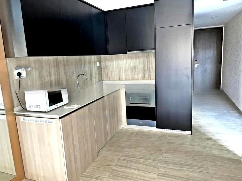 Step into a world of modern elegance as you enter this beautifully renovated penthouse at Grandeur Park Residences. The abundant natural light floods through the floor-to-ceiling windows, illuminating the spacious living area adorned with a striking mirror feature wall and high ceilings that create an airy ambiance. The minimalist design, complemented by light-colored tiled flooring, invites you to relax and unwind while enjoying captivating urban views.