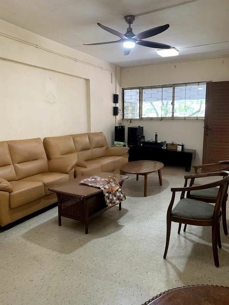 Step into this inviting 2-bedroom HDB flat and feel the warmth of its functional layout. The moderate natural light filters through the window grilles, illuminating the leather sofa set in the living room and highlighting the original finishes that give the space a nostalgic charm. Enjoy views of lush greenery that create a serene backdrop for your everyday living.