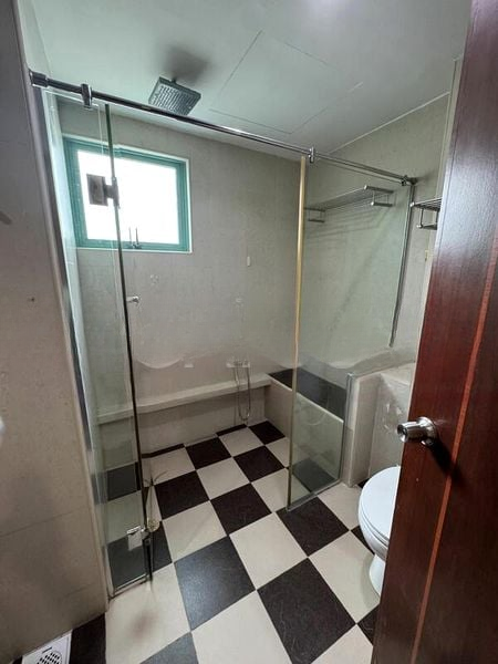 This thoughtfully designed 3-bedroom unit boasts extensive built-in wooden wardrobes, providing ample storage while maintaining an uncluttered aesthetic. The open layout seamlessly connects the living area to the study, which is equipped with a built-in desk and shelving, perfect for remote work or study. The bathrooms are stylishly appointed with checkered black and white floor tiles and a luxurious rain shower, ensuring a refreshing retreat.
