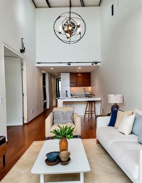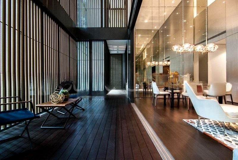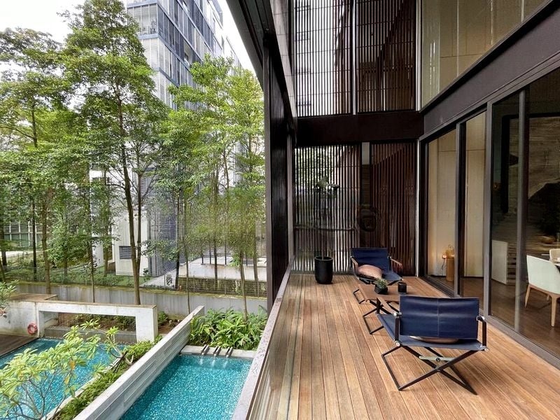 Step into a world of sophistication as you enter this exquisite unit at Lloyd Sixtyfive. The abundant natural light floods through the floor-to-ceiling glass walls, illuminating the double-volume living space adorned with elegant marble flooring and a stylish area rug. The seamless integration of indoor and outdoor living is highlighted by the timber-decked balcony, offering breathtaking views of lush greenery and the city skyline.