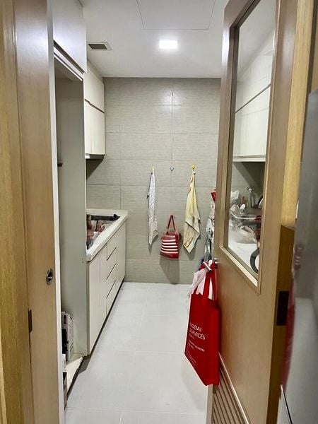 Step into this beautifully maintained unit at SPACE @ KOVAN, where modern minimalist design meets functionality. The open-concept living area is bathed in natural light, featuring wood-look laminate flooring and a ceiling fan that enhances the airy ambiance. The wall-mounted mirror adds a touch of elegance, making the space feel even more expansive.