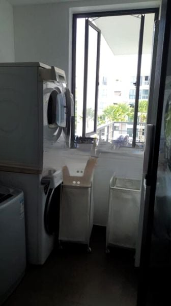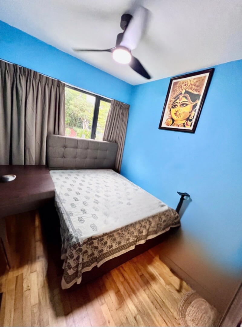 Step into this inviting 2-bedroom unit at Parc Olympia, where a warm ambiance greets you with its cozy, lived-in feel. The living room features a striking yellow accent wall, complemented by tiled flooring and a split-unit air conditioning system, ensuring comfort year-round. Large windows in the bedrooms frame serene views of lush greenery, while the enclosed balcony offers a perfect retreat with its woven pendant light and outdoor furniture, ideal for relaxation.