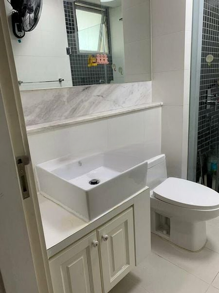 Step into this inviting 2-bedroom unit at Ferraria Park Condominium, where the ambiance is both functional and lived-in. The living and dining area greets you with sparkling crystal chandeliers that cast a warm glow over the tiled flooring, while the urban views remind you of the vibrant city life just outside your window.