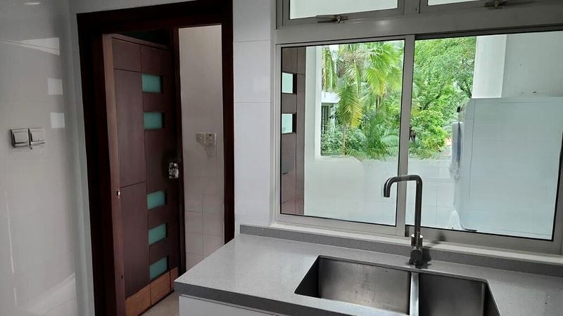 Step into this beautifully renovated 3-bedroom unit at Nassimville and be greeted by an abundance of natural light pouring through large windows, creating a bright and airy ambiance. The elegant parquet wood flooring and the unique curved wall feature add a touch of sophistication, while the balcony offers a serene view of lush greenery, perfect for relaxation.