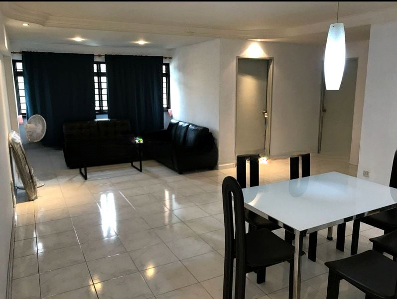 Step into this well-maintained 3-bedroom unit at 765 Bedok Reservoir View, where the open-plan living and dining area welcomes you with its functional ambiance and modern furnishings. The white tiled flooring reflects natural light, while the large mirrored sliding wardrobe adds a touch of elegance to the space. Enjoy the comfort of black leather sofas and a stylish glass-top coffee table, perfect for both relaxation and entertaining.