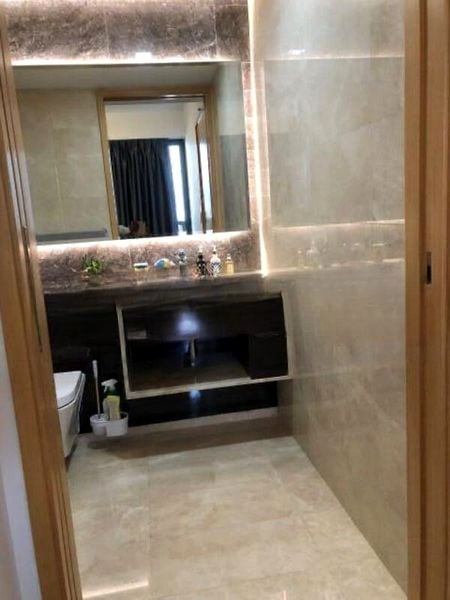 Step into a world of modern elegance as you enter this well-maintained 1-bedroom unit at Commonwealth Towers. The marble-look floor tiles reflect natural light, creating a bright and airy ambiance. Enjoy stunning views of the city skyline from your living room, where modern pendant lighting adds a touch of sophistication to the open concept layout.