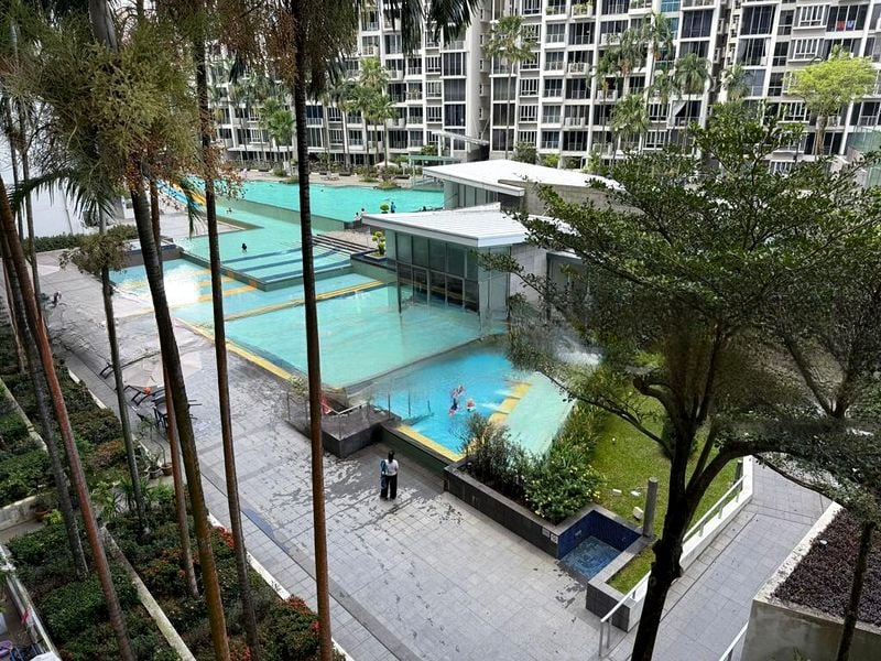 Step into a bright and airy sanctuary at Grandeur 8, where abundant natural light floods the space, highlighting the well-maintained finishes and inviting ambiance. The stunning pool and tennis court views from the balcony create a serene backdrop, making every moment spent here feel like a retreat.