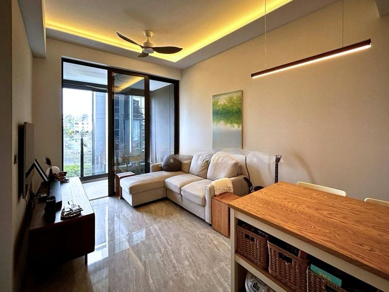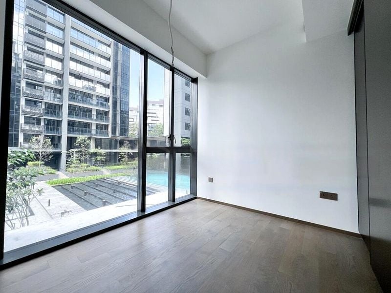 Step into a world of elegance as you enter this brand-new condominium at Leedon Green. Bathed in abundant natural light, the open-concept living space features polished stone flooring and floor-to-ceiling windows that frame breathtaking views of the pool, lush greenery, and the city skyline. The ambiance is modern minimalist, enhanced by linear pendant lighting that adds a touch of sophistication.
