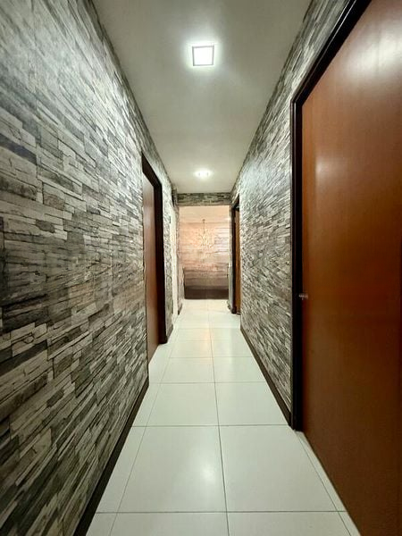 Step into this vibrant 3-bedroom flat at 169A Punggol Field, where colorful accents and functional design create an inviting atmosphere. The natural light filters through the well-maintained interiors, highlighting the unique stone-patterned wallpaper in the hallway and the distinct color-themed bedrooms. Enjoy views of urban greenery that add a refreshing touch to your living space.