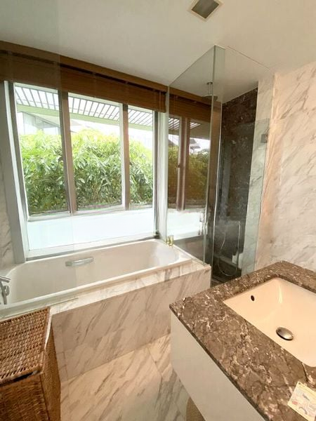 This well-maintained 2-bedroom, 2-bathroom condo boasts an open-plan layout that enhances the spacious feel. The living area features stylish track lighting and easy access to the balcony, while the dining area is perfect for entertaining with its elegant oval table. Retreat to the master bedroom with its large windows framing the greenery view, and indulge in the luxurious marble finishes of the bathrooms, complete with a separate bathtub and shower.