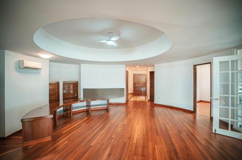 Step into a world of elegance as you enter this beautifully renovated unit at The Draycott. The bright and airy ambiance is enhanced by abundant natural light pouring in through large windows, showcasing breathtaking city skyline views. The circular recessed ceiling and curved built-in wooden desk in the living room create a unique focal point, while the warm wood flooring adds a touch of sophistication.