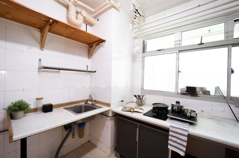 The galley kitchen features stylish two-tone cabinetry and is equipped with a stainless steel refrigerator, perfect for culinary enthusiasts. With an efficient layout of 113 sqm, this unit includes three bedrooms, a suggested study area, a service yard, and a household shelter, providing ample space for family living and versatility.