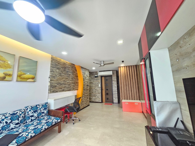 This well-maintained 3-bedroom, 3-bathroom unit boasts a thoughtful layout with standout features such as a striking stone-textured accent wall and designer cabinetry in bold red and black tones. The kitchen is a chef's dream, featuring high-gloss cabinets, a solid surface countertop, and modern appliances. Each bedroom is designed for comfort, with ample storage and stylish finishes that enhance the contemporary ambiance.