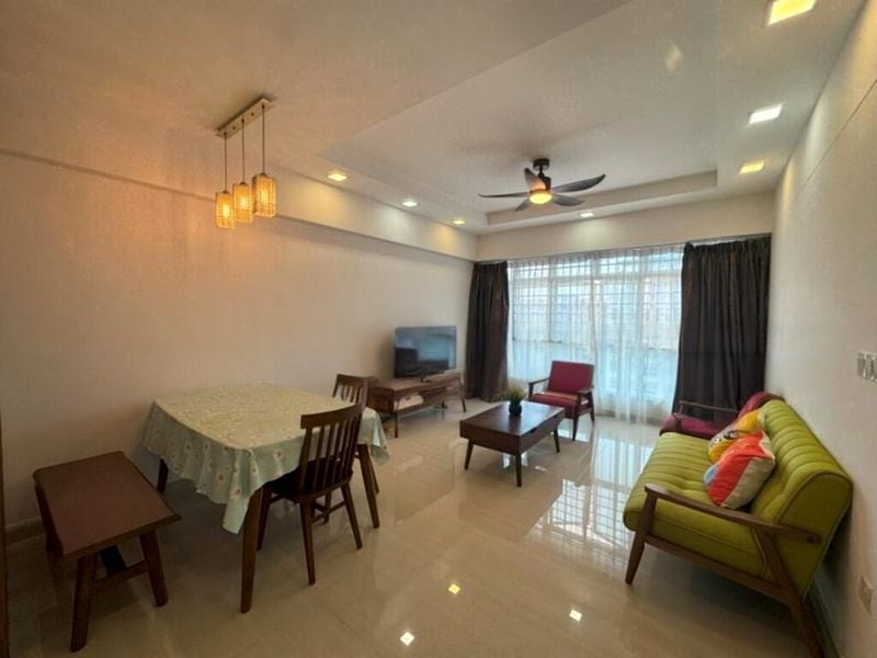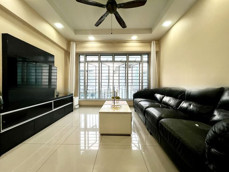Step into this beautifully renovated HDB flat and be greeted by an ambiance that is both modern and functional. The large windows invite natural light to fill the living room, highlighting the sleek tiled flooring and recessed ceiling lights. Enjoy urban views from the comfort of your home, creating a vibrant backdrop to your daily life.