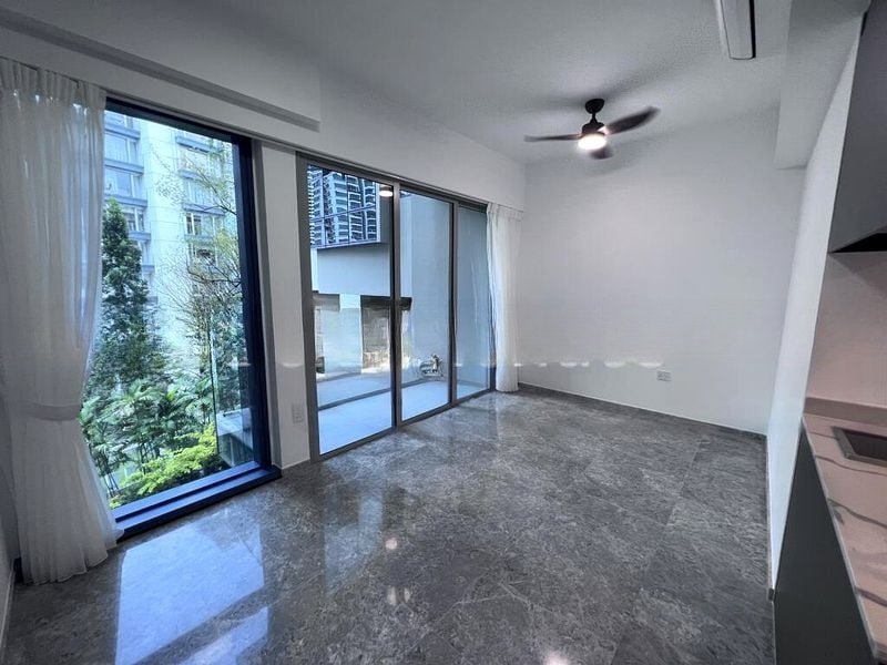 Step into a world of modern elegance as you enter this brand-new unit at Wilshire Residences. The open-concept living room greets you with stunning marble-look floor tiles that reflect the abundant natural light pouring in through the floor-to-ceiling windows. Enjoy serene views of lush greenery and the urban landscape from your glass-railed balcony, creating a tranquil escape right at home.