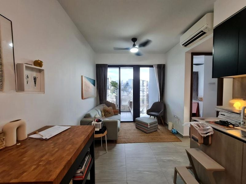 This efficient 1-bedroom plus study layout features a spacious master bedroom with an en-suite bathroom, and a second bedroom designed for child-friendly living. The open-concept kitchen is a culinary delight, boasting dual-tone cabinetry and an integrated dining island, making it ideal for family gatherings. Fully furnished and ready for immediate occupancy, this unit combines comfort with practicality.