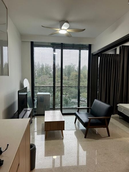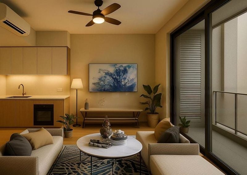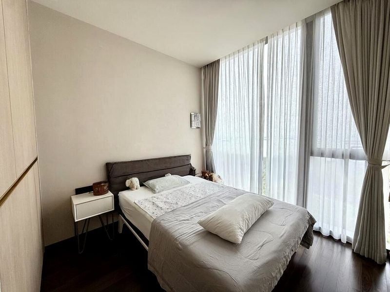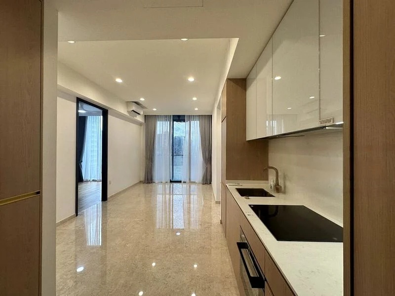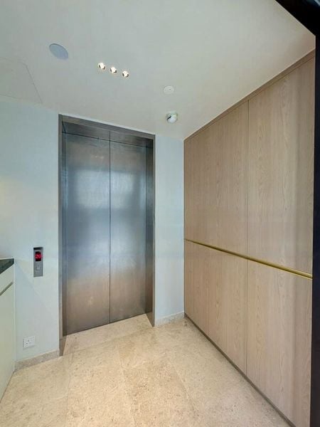 Step into a bright and airy sanctuary at Meyer Mansion, where abundant natural light floods through floor-to-ceiling windows, showcasing breathtaking views of the city skyline and lush greenery. The elegant marble flooring and designer finishes create an inviting ambiance that feels both luxurious and welcoming.