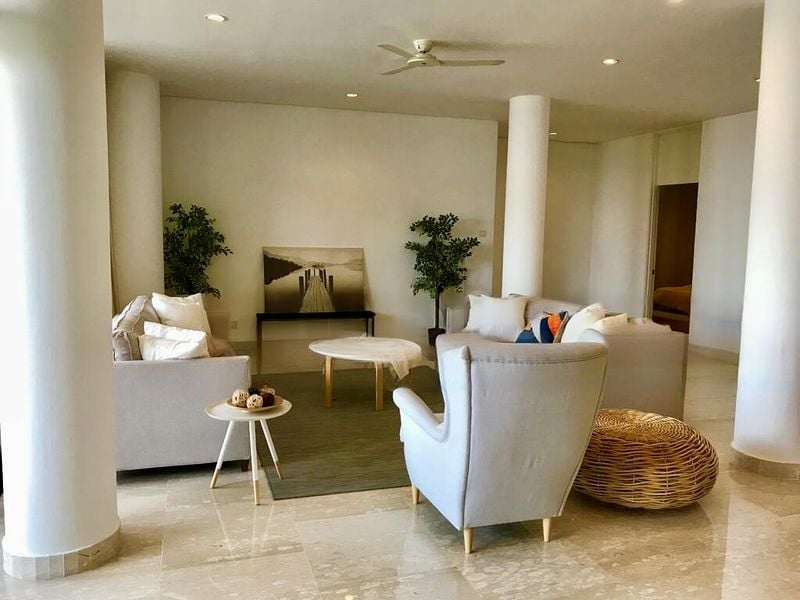This well-maintained, fully-furnished unit features three generous bedrooms, each designed to maximize comfort and light. The kitchen boasts a sleek stainless steel backsplash, wooden cabinetry, and modern appliances, while the bathrooms are adorned with elegant marble wall tiles and glass shower partitions. With recessed lighting throughout, every corner of this home radiates sophistication and warmth.