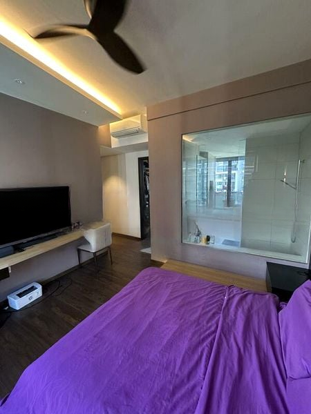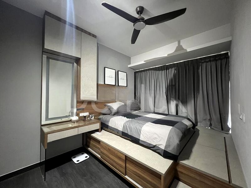 Step into this stunning 4-bedroom unit at D'NEST and be captivated by the modern eclectic ambiance. The polished tile flooring reflects the designer lighting fixtures, creating a warm and inviting atmosphere. With a clever use of space, the open-concept living and dining area is adorned with decorative false ceiling inserts and designer chandeliers, while the blue constellation wallpaper in the bedroom adds a unique touch of whimsy.