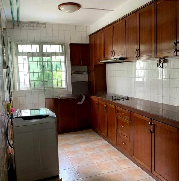 This thoughtfully designed 3-bedroom flat boasts an L-shaped kitchen with dark wood cabinetry and a white tiled backsplash, perfect for culinary enthusiasts. Each bedroom is air-conditioned and features light wood flooring, ensuring a comfortable night's sleep. The layout maximizes space and functionality, making it ideal for families or those seeking a cozy home.