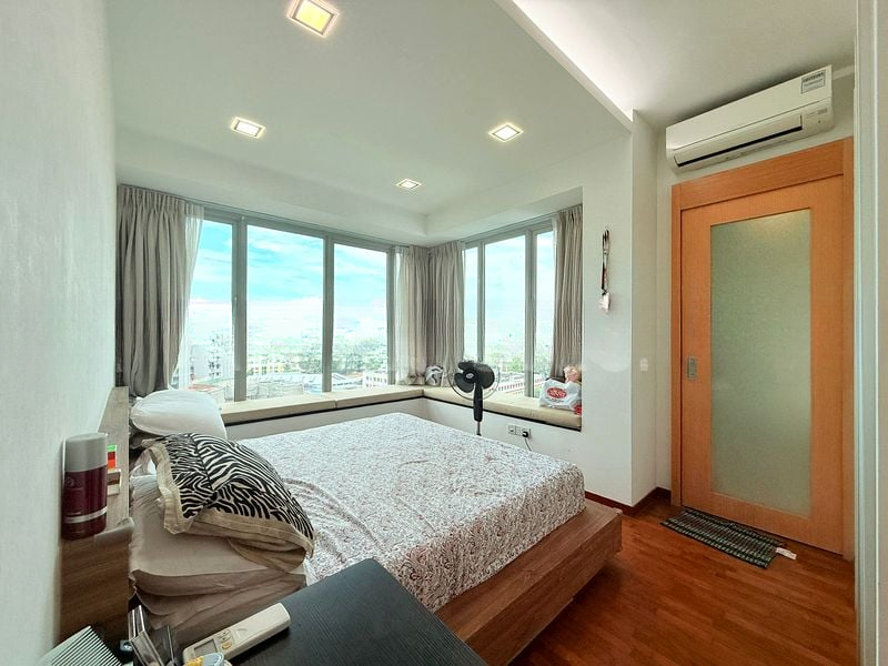 Step into a world of elegance and comfort in this stunning duplex penthouse at Kovan Residences. The moment you enter, you are greeted by abundant natural light pouring through the floor-to-ceiling windows, illuminating the open-concept living area adorned with a designer crystal chandelier. The high ceilings create an airy ambiance, while corner bay windows frame breathtaking views of the city skyline and lush greenery.