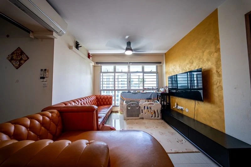 Step into this inviting 3-bedroom flat at 406B Northshore Drive, where a warm ambiance greets you with abundant natural light cascading through large windows. The standout yellow textured feature wall and the orange tufted leather sofa create a cozy yet stylish living space, perfect for relaxation and family gatherings. Enjoy views of lush greenery and the surrounding residential landscape, enhancing the tranquil atmosphere of your new home.