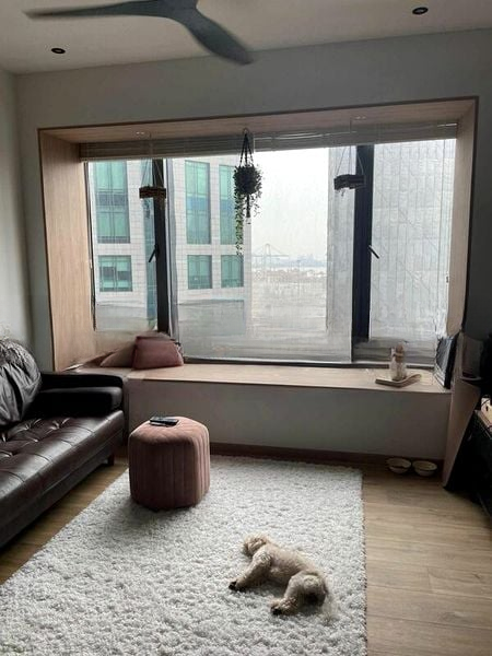 Step into a modern industrial haven at ALTEZ, where the inviting ambiance greets you with a stylish bay window seat that frames captivating urban views. The open-concept living and dining area is bathed in natural light, accentuated by pendant light fixtures and sleek wooden flooring, creating a perfect blend of comfort and sophistication.