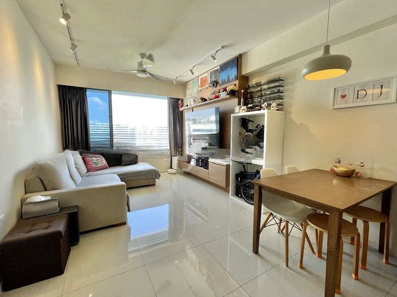 Step into this beautifully renovated 3-bedroom flat at 310B Punggol Walk, where abundant natural light floods the open-concept living and dining area, accentuating the polished floor tiles and modern minimalist ambiance. Large windows frame unblocked views of lush greenery and unique architectural buildings, creating a serene backdrop that invites relaxation and inspiration.