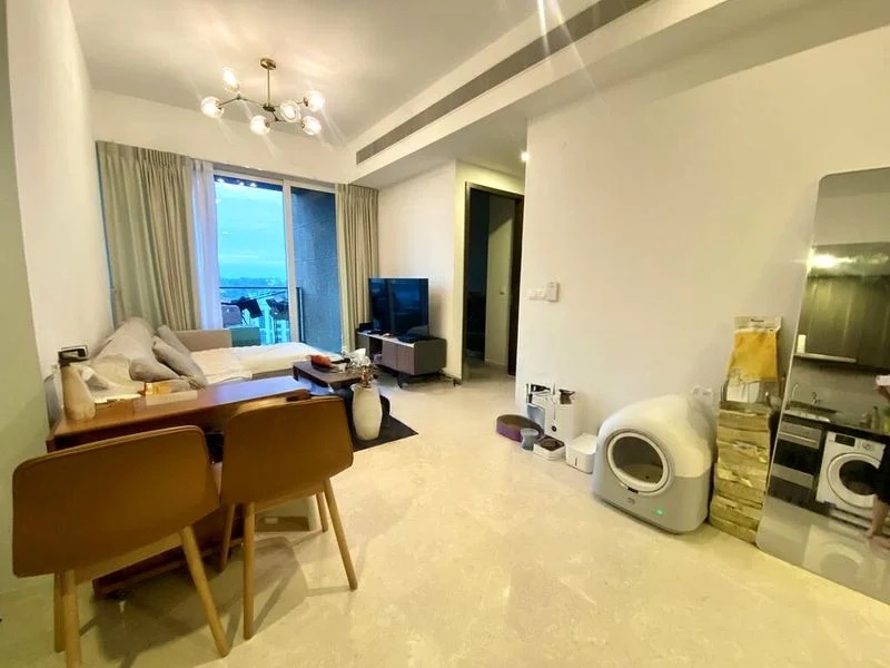 Step into this beautifully maintained 2-bedroom unit at Principal Garden, where abundant natural light floods the open-concept living space, accentuating the elegant marble-look flooring and modern chandelier. The floor-to-ceiling windows not only enhance the airy ambiance but also frame stunning views of the pool and city skyline, creating a serene retreat in the heart of the city.