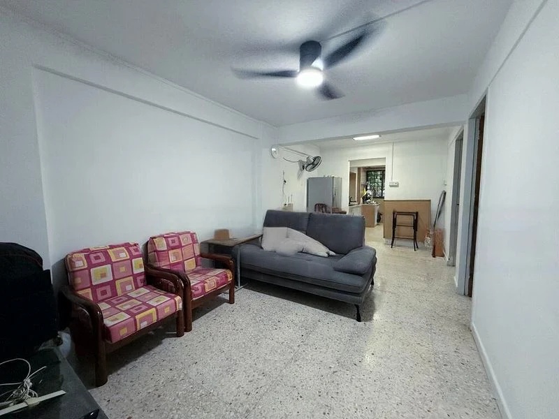 Step into this inviting 2-bedroom flat at 28 Jalan Bukit Merah, where a functional and lived-in ambiance greets you. The open concept living and dining area is illuminated by moderate natural light, showcasing tiled flooring and charming wall decals that add character to the space. Ceiling fans and air conditioning units ensure comfort throughout the year, making this flat a cozy retreat.