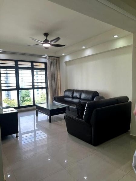 Step into this beautifully maintained 5-room HDB unit and be greeted by an ambiance of brightness and functionality. The modern chandelier and recessed spotlights illuminate the spacious living area, while the cove lighting adds a touch of elegance. Enjoy views of neighboring residential blocks and lush urban greenery from your balcony, creating a serene escape in the heart of Jurong West.