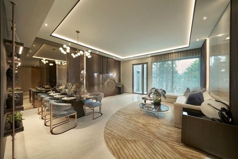 Step into a world of luxury as you enter this exquisite duplex at The Residences at W Singapore Sentosa Cove. Bathed in abundant natural light, the open-concept living area features a striking marble feature wall and a designer curved sofa that invites relaxation. Floor-to-ceiling windows frame breathtaking views of the marina, yachts, and the vibrant city skyline, creating an ambiance that is both modern and serene.