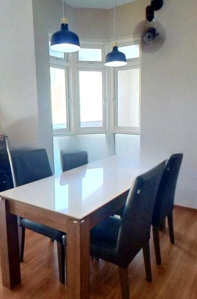 This thoughtfully designed 3-bedroom, 3-bathroom unit boasts a partial renovation with standout features including a stylish teal kitchen with modern appliances, a built-in TV console in the dining area, and elegant wooden flooring in the bedrooms. The layout maximizes space and comfort, making it perfect for both relaxation and entertaining.