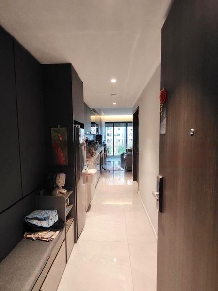 This well-maintained 1-bedroom unit features an efficient layout, showcasing a linear kitchen equipped with integrated appliances, including an induction hob and built-in oven. The open-concept living area seamlessly connects to the balcony, perfect for enjoying your morning coffee. The master bedroom is designed for comfort, complete with a built-in wardrobe and a large window adorned with sheer curtains, allowing for a serene retreat.