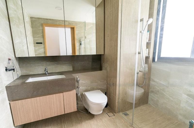 Step into a bright and airy sanctuary where abundant natural light pours in, illuminating the well-maintained interiors of this 2-bedroom unit at The Jovell. The inviting ambiance is complemented by stunning views of the pool and lush greenery, creating a serene backdrop for your daily life. The balcony features a charming wooden slatted ceiling and stone-paved floor, perfect for outdoor dining and relaxation.