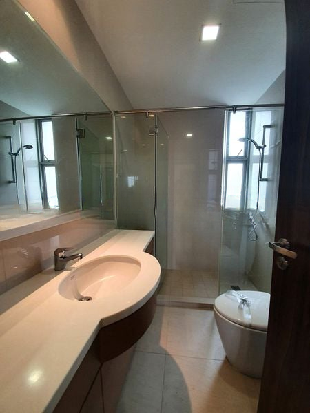 This well-maintained 3-bedroom unit features an open-concept layout, seamlessly connecting the living and dining areas. The modern kitchen boasts white cabinetry, stainless steel appliances, and both gas and induction hobs, perfect for culinary enthusiasts. Each bedroom is generously sized, equipped with large built-in wardrobes, and offers tranquil views, while the bathrooms are designed with luxury in mind, featuring glass shower enclosures and a relaxing bathtub.