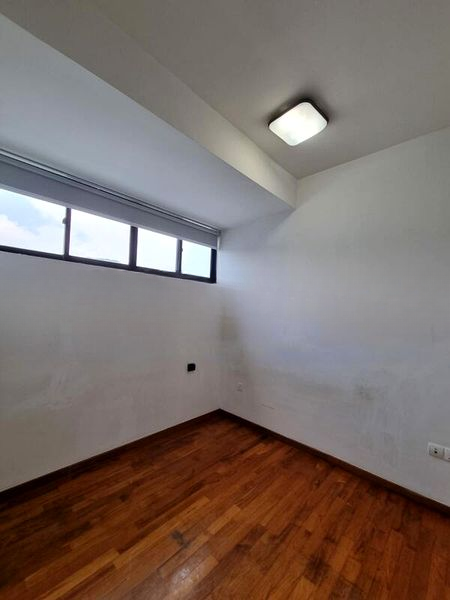 Step into a serene oasis at Crystal Heights, where modern minimalism meets comfort. The well-maintained unit welcomes you with warm wood flooring and a high-set horizontal window that bathes the space in natural light. Enjoy the contemporary ambiance as you take in views of the neighboring building, creating a cozy yet connected living experience.